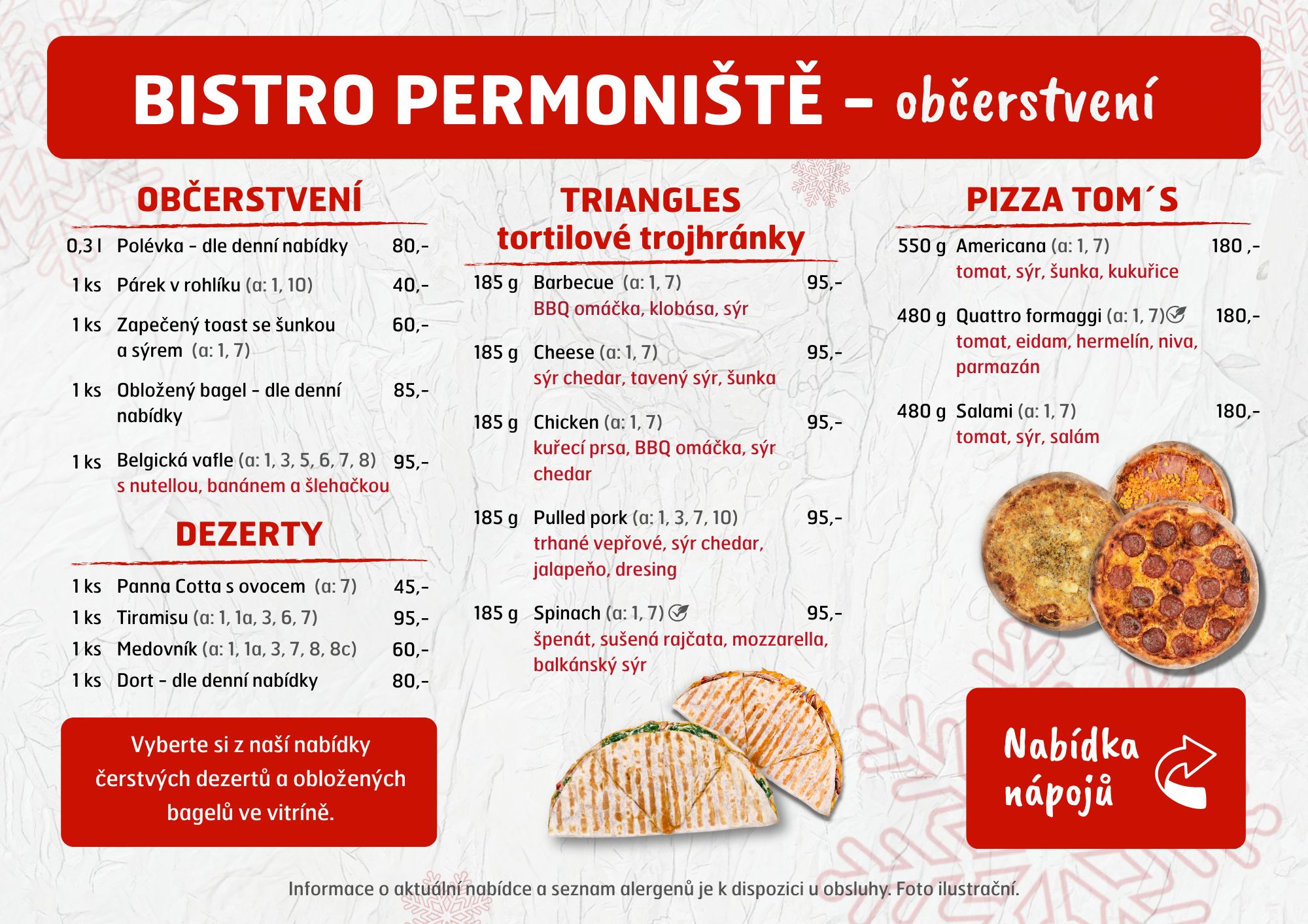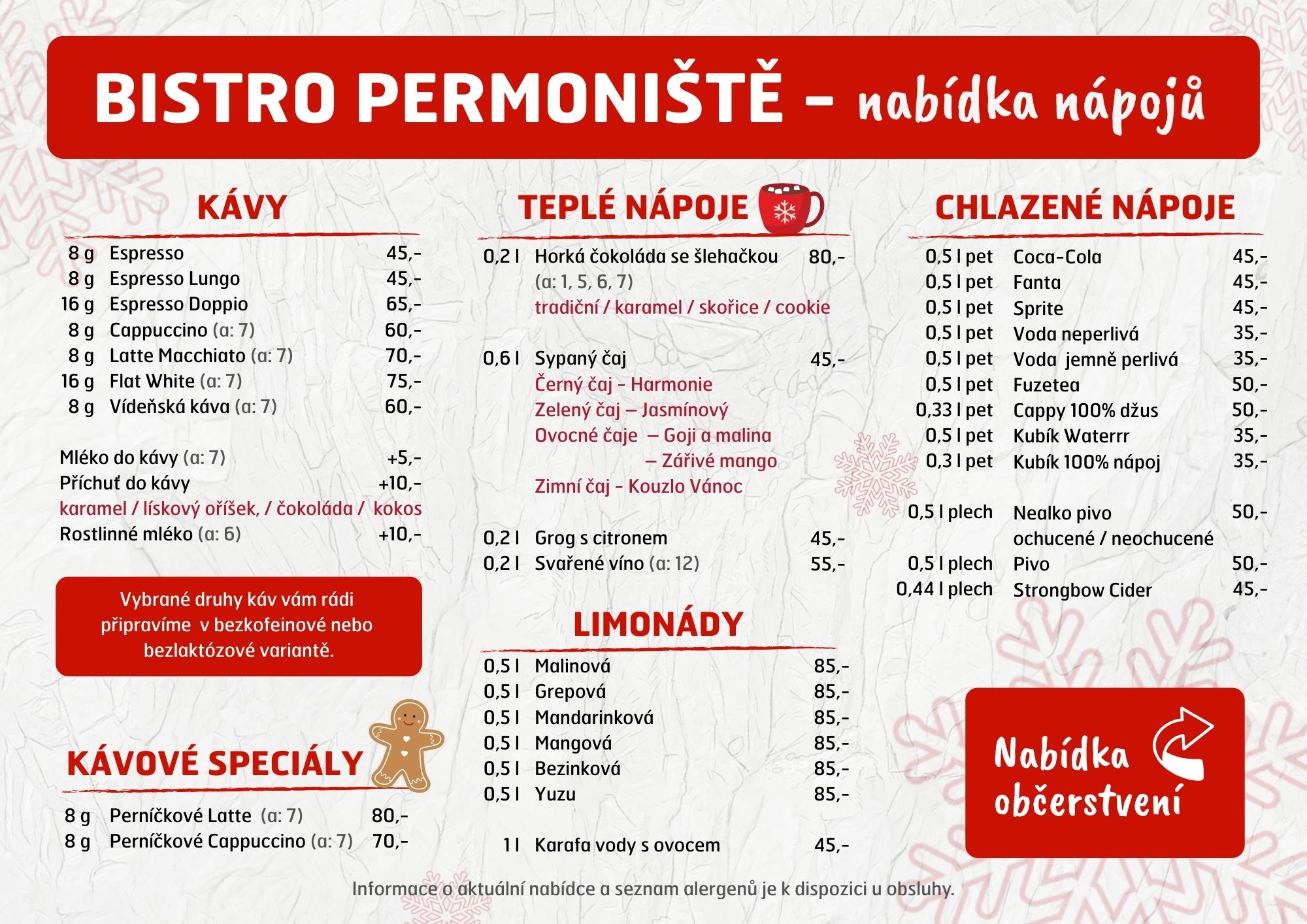 Občerstvení a nápoje je možné konzumovat pouze v prostoru Bistra. Vnášení občerstvení do expozic Permoniště je přísně zakázáno.
